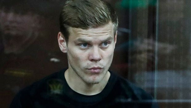 Zenit St. Petersburg striker Alexander Kokorin attends hearings in a court in Moscow, Russia, Thursday, Oct. 11, 2018. Krasnodar midfielder Pavel Mamaev and Zenit Saint Petersburg forward Alexander Kokorin will remain behind bars until Dec. 8 pending their trial for "hooliganism", a crime for which they face up to five years in prison, Russian agencies reported. (AP Photo/Pavel Golovkin) AP Photo/Pavel Golovkin