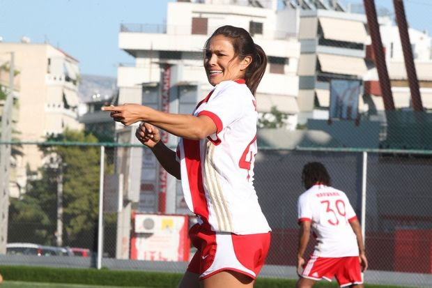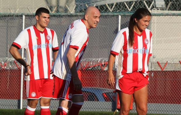 Η λαμπρή αυτή εκδήλωση ολοκληρώθηκε με τρόπο… ποδοσφαιρικό, όπως αρμόζει άλλωστε στον Ολυμπιακό! Σε γήπεδο κοντά στο γήπεδο “Καραϊσκάκης” διεξήχθη φιλικός αγώνας με την πρώην δημοσιογράφος και νυν αθλήτρια Τέμρις Λέιν να… κλέβει την παράσταση, ως η μοναδική γυναίκα που πήρε μέρος στον αγώνα!