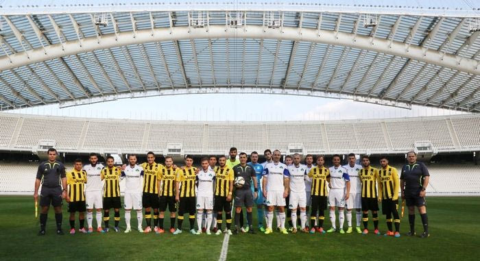 Πριν από την έναρξη του ματς στο ΟΑΚΑ, οι δύο ομάδες φωτογραφήθηκαν μαζί στη σέντρα σε ένα… σπάνιο στιγμιότυπο παρέα με τους διαιτητές της αναμέτρησης, δείγμα του κλίματος που επικράτησε στην Καλογρέζα.