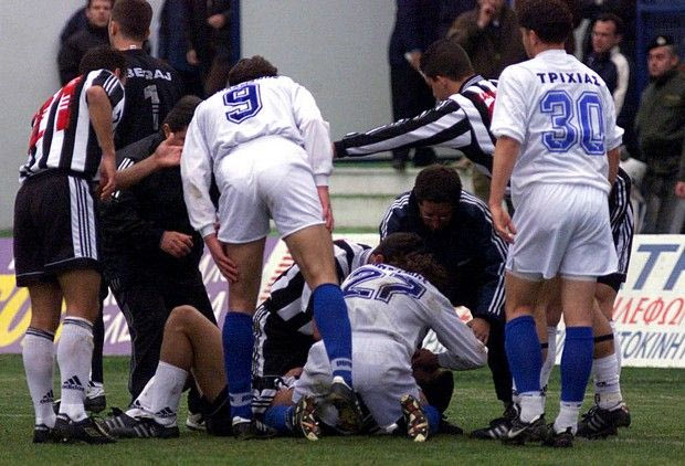 Στο 85′, και προτού οι γηπεδούχοι μειώσουν στον έξτρα χρόνο με τον Ανδρεάδη για το τελικό 2-1, ο γκολκίπερ Αριάν Μπεκιάι έκανε έξοδο για ν’ απομακρύνει την μπάλα, αλλά άθελά του τραυμάτισε τον Παύλο Αδάμο στα πλευρά. Το χτύπημα ήταν τόσο ισχυρό που ο -τότε- 26χρονος αμυντικός έχασε τις αισθήσεις του και σωριάστηκε λιπόθυμος στο χορτάρι του γηπέδου.