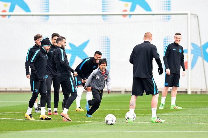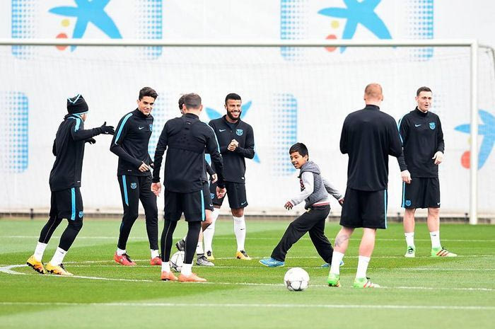 Μια ευχάριστη… νότα είχε η προπόνηση της Μπαρτσελόνα την Τρίτη (15/3) ενόψει της ρεβάνς με την Άρσεναλ. Τρεις πιτσιρικάδες κατάφεραν να περάσουν την ασφάλεια και να μπουν στο προπονητικό κέντρο των “μπλαουγκράνα”, όπου πέρασαν πολύ όμορφες στιγμές με τους ποδοσφαιριστές, παίζοντας μπάλα και βγάζοντας… selfies.