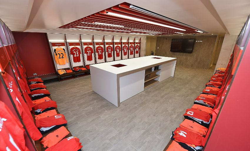 Πρόκειται για έναν χώρο άνετο, ευρύχωρο και άρτια εξοπλισμένο που παρέχει κάθε ευκολία στους άσους των “κόκκινων” (υπάρχει μέχρι και χώρος θεραπείας) ενώ για τον κάθε παίκτη υπάρχει μία μεταλλική πλάκα κάτω από την οποία μπορεί να βρει τη φανέλα, το σορτς και τις κάλτσες του πριν από κάθε παιχνίδι.