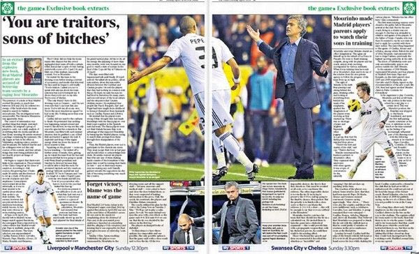 Μάλιστα, σε ένα από τα αποσπάσματα του βιβλίου το οποίο δημοσίευσε η εφημερίδα “Times” αποκαλύπτεται το ξέσπασμα του Special One έπειτα από την αναμέτρηση της 16ης Απριλίου του 2011 με την Μπαρτσελόνα, με τον τεχνικό της Τσέλσι να χαρακτηρίζει προδότες του ποδοσφαιριστές της Ρεάλ και να τονίζει πως έχει μείνει μόνος του στα αποδυτήρια.