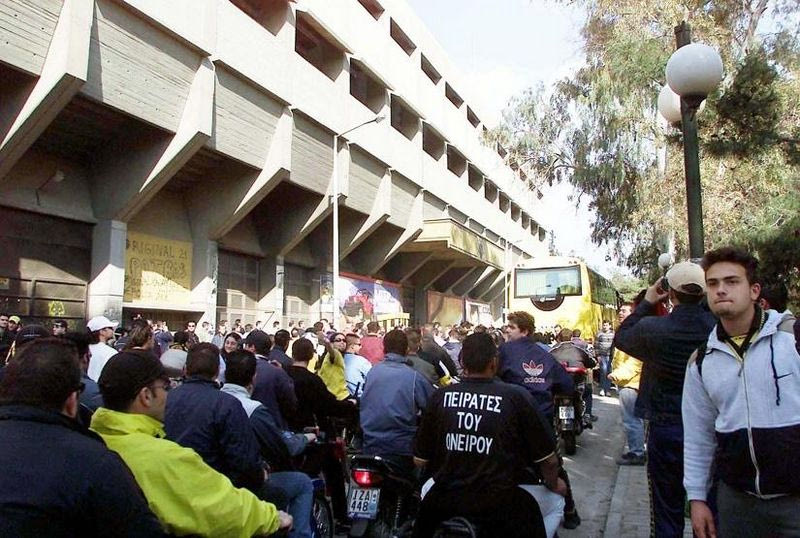 Έξω από τη “θύρα 18” (επίσημα) αλλά και την είσοδο στον χώρο των αποδυτηρίων. Στο βάθος διακρίνεται το “Γ. Μόσχος” πίσω από τη “θύρα 21”.