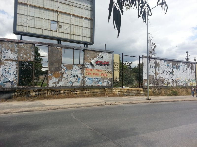 Υπάρχει και αυτή η ταμπέλα να θυμίζει ότι κάποτε θα κατασκευαζόταν “Νέο Κέντρο Αθλητισμού”…