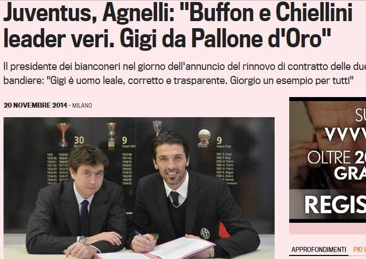 Ο Τζιανλουίτζι Μπουφόν κι ο Τζόρτζιο Κιελίνι υπέγραψαν νέα συμβόλαια με την Γιουβέντους, μέχρι το 2017 και το 2018 αντίστοιχα.