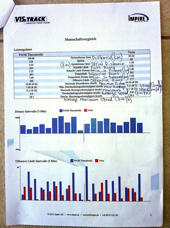 Αυτή τη φορά παρουσιάστηκαν τα δεδομένα του εντός έδρας παιχνιδιού με τη Βέροια στο οποίο, όπως καταγράφηκε από το σύστημα “Vis Track” ο ΠΑΟΚ έτρεξε 11 χιλιόμετρα περισσότερα από την αντίπαλό του και ήταν καλύτερος σε όλες τις κατηγορίες που αφορούν τα τρεξίματα.