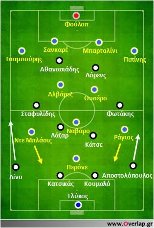 Ο Σταφυλίδης στο αριστερό άκρο της μεσαίας γραμμής, επίσης σε μία προσπάθεια ενίσχυσης της αμυντικής αποτελεσματικότητας στις πλευρές που ταλαιπωρεί την ομάδα