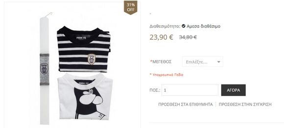 Με μία τέτοια ξεχωριστή λαμπάδα λοιπόν, τι καλύτερο από το να ντύσετε το πιτσιρίκι σας και με μία φανέλα του δικεφάλου, ή οποία δίνεται σε συνδυασμό με τη λαμπάδα η οποία βγαίνει σε παιδικά μεγέθη και τέσσερα σχέδια. Το κλασικό ασπρόμαυρο ριγέ, το αγαπημένο μαύρο, το πανέμορφο γαλάζιο και το limited γκρι. Ότι από αυτά και να επιλέξετε έχετε ένα σίγουρο χαμόγελο από το αγαπημένο σας ΠΑΟΚτσάκι.