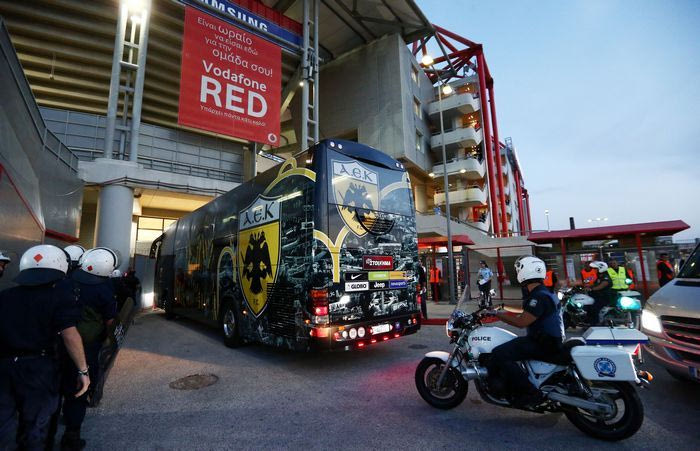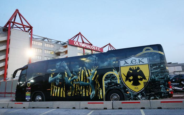 Η στιγμή της άφιξης των πούλμαν των δύο ομάδων, τα τετ-α-τετ στο χορτάρι του "Γ. Καραϊσκάκης" και οι προπονητές. Δείτε το photostory του μεγάλου ντέρμπι ανάμεσα σε Ολυμπιακό και ΑΕΚ.