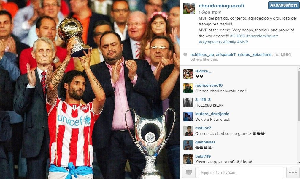 Ενώ στη συνέχεια ανεβάζοντας μια φωτογραφία αγκαλιά με το βραβείο του MVP έγραψε: “MPV του αγώνα. Πολύ χαρούμενος, ευγνώμων και περήφανος για την δουλειά που κάναμε”.