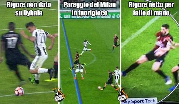 “Χάρισε και εσύ ένα πέναλτι υπέρ της Γιούβε. Στείλε sms στο 48282” και “Το παιχνίδι θα τελειώσει όταν θα σκοράρει η Γιουβέντους” ήταν τα πιο “δημοφιλή”, με τους οπαδούς της Γιουβέντους να υποστηρίζουν από την πλευρά τους πως δεν δόθηκε πέναλτι υπέρ της “βέκια σινιόρα” στο πρώτο μέρος σε ανατροπή του Ντιμπάλα ενώ ο Μπάκα ήταν οριακά σε θέση οφσάιντ στη φάση του γκολ των “ροσονέρι”.