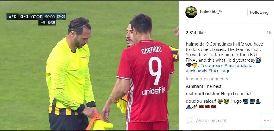 Ο Πορτογάλος δεν έμεινε στο Facebook, “χτυπώντας” και στο instagram, σχολιάζοντας την πρόκριση της ΑΕΚ ως “ένα μεγάλο ρίσκο για έναν μεγάλο τελικό”!