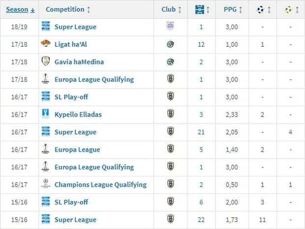 Στην τελευταία του χρονιά στην Super League αν και αγωνίστηκε ως βασικός με τον ΠΑΟΚ σε 21 παιχνίδια δεν κατάφερε να σκοράρει κανένα γκολ (!) με αποτέλεσμα να φύγει από την Θεσσαλονίκη με προορισμό το Ισραήλ.