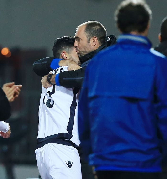 Ο Στέφανος Αθανασιάδης άνοιξε το σκορ για τον “Δικέφαλο” στο 7ο λεπτό και έτρεξε άμεσα προς τον πάγκο για να πανηγυρίσει έξαλλα την επιτυχία με τον προπονητή του, Ιγκόρ Τούντορ. Οι δύο άνδρες αγκαλιάστηκαν, ενώ ο Κροάτης τεχνικός έδωσε ένα “πατρικό” φιλί στον 26χρονο επιθετικό.