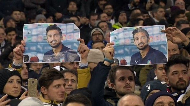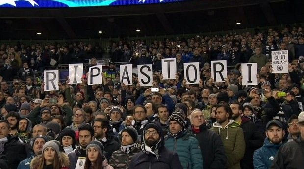 Φορτισμένη ήταν πάντως η ατμόσφαιρα και στις εξέδρες όπου βρίσκονταν οι φίλοι της “βέκια σινιόρα”, με κάποιους εξ αυτών να κρατούν φωτογραφίες του Ιταλού κεντρικού αμυντικούι αλλά και πλακάτ με τις λέξεις “RIP” και “Aστόρι”.