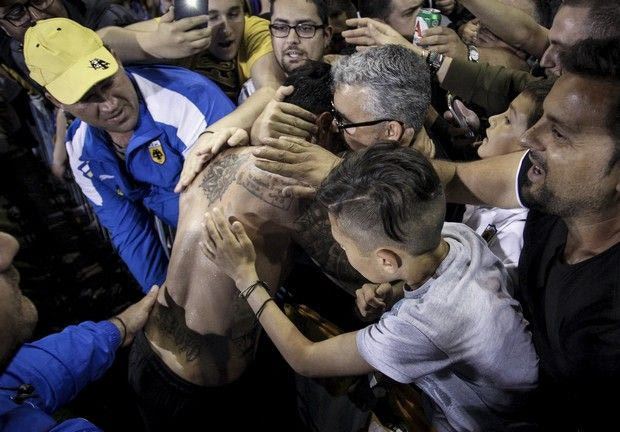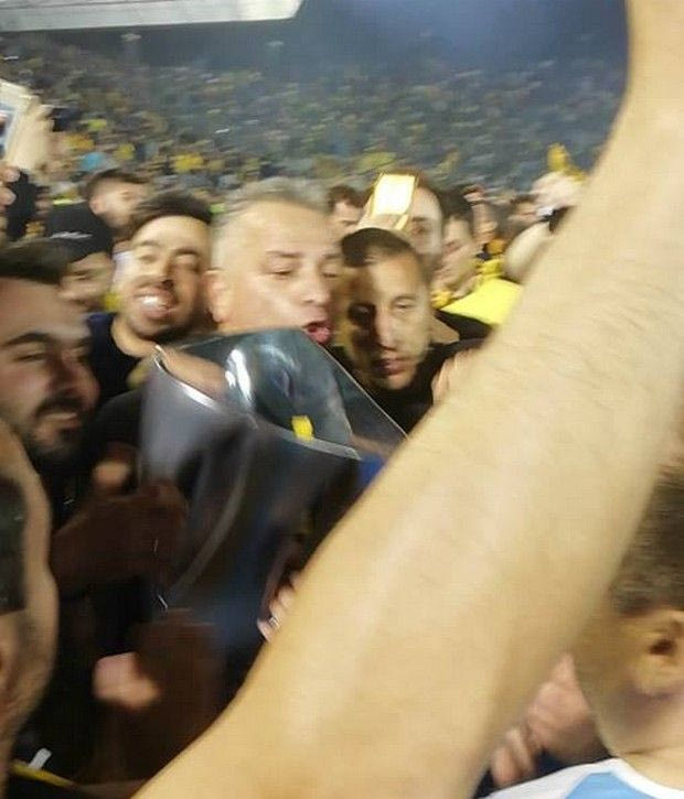 Ήταν μάλιστα τόσο δυνατά τα συναισθήματα που ένιωσε, με την ΑΕΚ να επιστρέφει στο θρόνο της πρωταθλήτριας ώστε φρόντισε να “προστατέψει” την κούπα ως άλλος “ιππότης στρογγυλής τραπέζης” και να την οδηγήσει… σώα και ασφαλή στα αποδυτήρια για τη συνέχεια του κιτρινόμαυρου πάρτι.