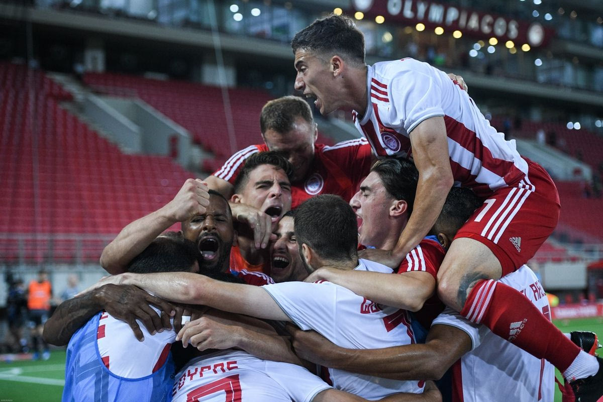 Οι παίκτες του Ολυμπιακού πανηγυρίζουν. Ως συνήθως φέτος... Eurokinissi Sports