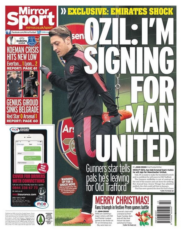 Αυτός θα είναι η Μάντσεστερ Γιουνάιτεντ, με το συμβόλαιο του Μεσούτ Εζίλ με τους “κανονιέρηδες” να εκπνέει το καλοκαίρι του 2018 και τον Ζοζέ Μουρίνιο να έχει ήδη ανοίξει τις αγκάλες του για να υποδεχτεί έναν παίκτη για τον οποίο έχει εκφραστεί εδώ και καιρό με άκρως κολακευτικα λόγια.