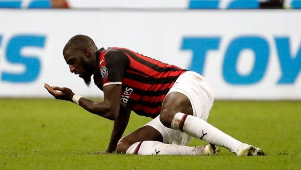 AC Milan's Tiemoue Bakayoko reacts during the Italian Cup, second leg semifinal soccer match between AC Milan and Lazio, at the San Siro stadium, in Milan, Italy, Wednesday, April 24, 2019. (AP Photo/Luca Bruno) AP Photo/Luca Bruno