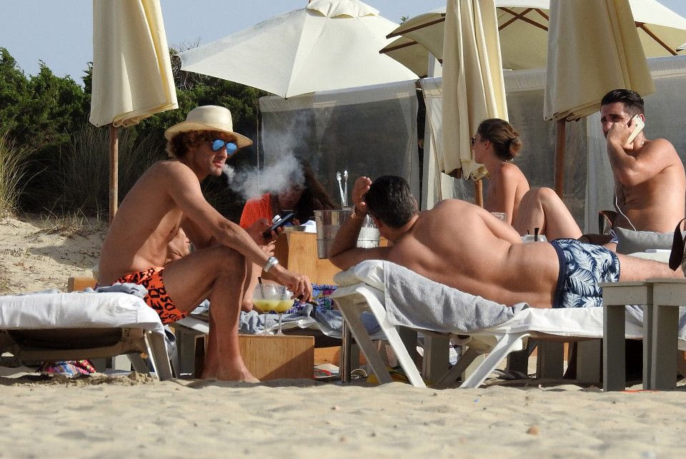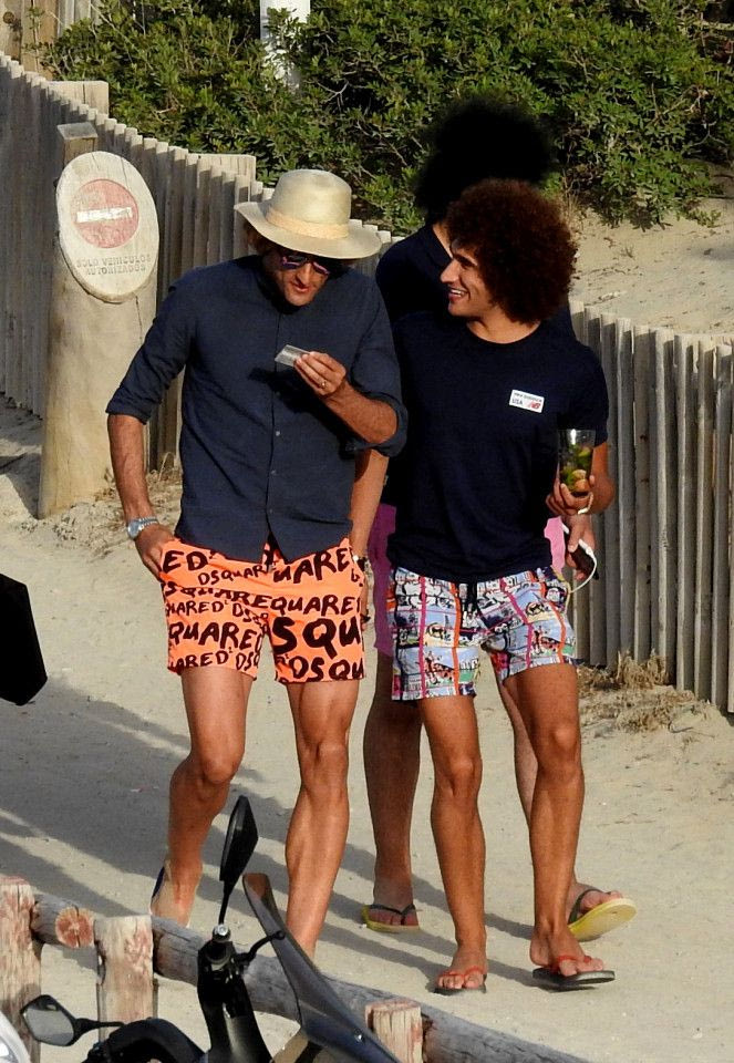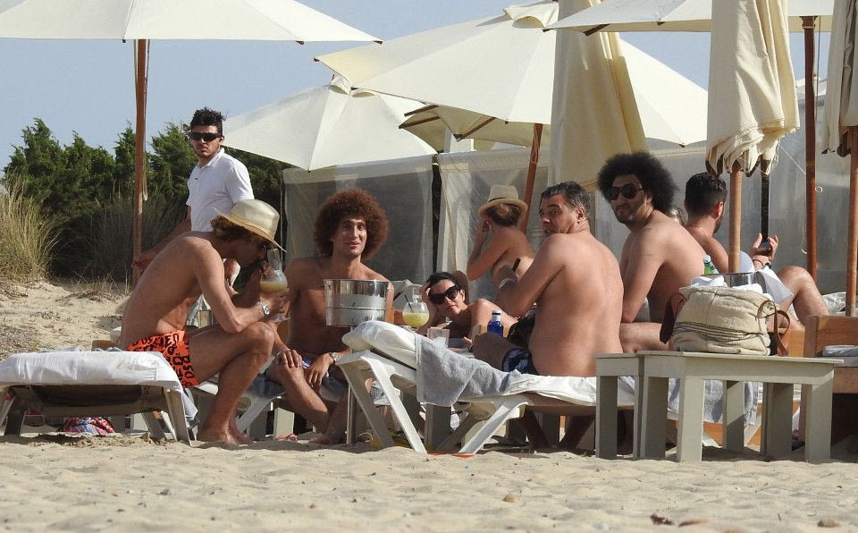 EXCLUSIVE: Manchester United flop Marouane Fellaini puffs on a giant cigar - just days after Belgium were dumped out of Euro 2016 by Wales. The Belgian star, 28, was spotted relaxing on holiday in Ibiza with twin brother Mansour. An onlooker said: He didnt look like he had a care in the world. The group enjoyed drinks in the sunshine yesterday (July 4) surrounded by bikini-clad girls. Fellaini - in sunglasses and a hat - was seen knocking back what appeared to be cocktails and posing for photos with a fan. Pre-tournament favourites Belgium were knocked out of the competition after losing to Wales 3-1 on July 1. Fellaini has struggled to meet expectations at Old Trafford since signing with the club in the summer of 2013. Pics taken July 4th. Silvia & Sergio / Splash News