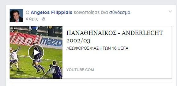Ο άλλοτε πρόεδρος της ΠΑΕ Παναθηναϊκός δημοσίευσε το videο της πολύ μεγάλης νίκης των πράσινων επί της Αντερλεχτ για το Κύπελλο UEFA της σεζόν 2002-2003.