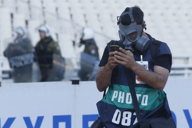 Ένας μάλιστα πήρε τα μέτρα του ώστε να μην αντιμετωπίσει το παραμικρό πρόβλημα από την αποπνικτική ατμόσφαιρα στο γήπεδο, καθώς είχε προμηθευτεί αντιασφυξιογόνα μάσκα την οποία και φόρεσε για να κάνει… απρόσκοπτα τη δουλειά του.