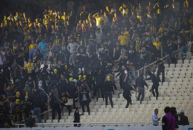 Ο τελικός του Κυπέλλου Ελλάδας μεταξύ της ΑΕΚ και του ΠΑΟΚ άρχισε με λίγα μόλις λεπτά καθυστέρηση και αυτό μπορεί να χαρακτηριστεί μικρό επίτευγμα αν αναλογιστεί κανείς πως υπήρχαν αρκετές εστίες (μικρής και μεγάλης) έντασης στις εξέδρες.
