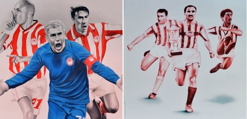 Μετά και τη νέα ανακαίνιση των αποδυτηρίων του “Γεώργιος Καραϊσκάκης” μορφές όπως αυτή του Γρηγόρη Γεωργάτου, του Αντώνη Νικοπολίδη και του Βασίλη Καραπιάλη, κοσμούν πια το χώρο.