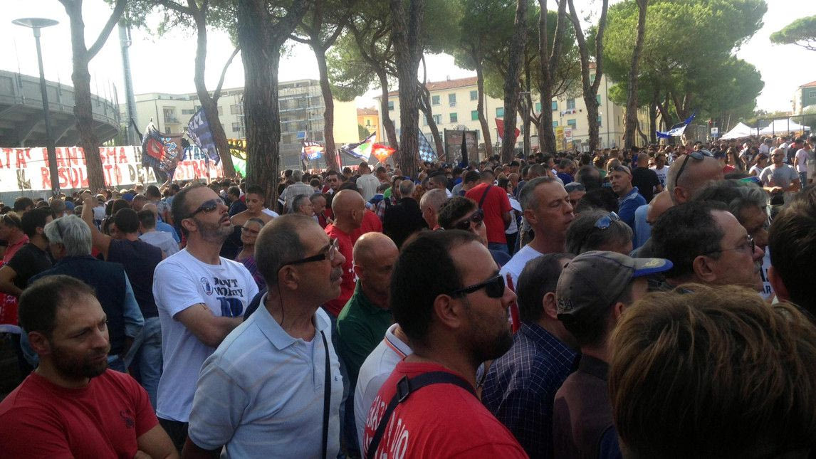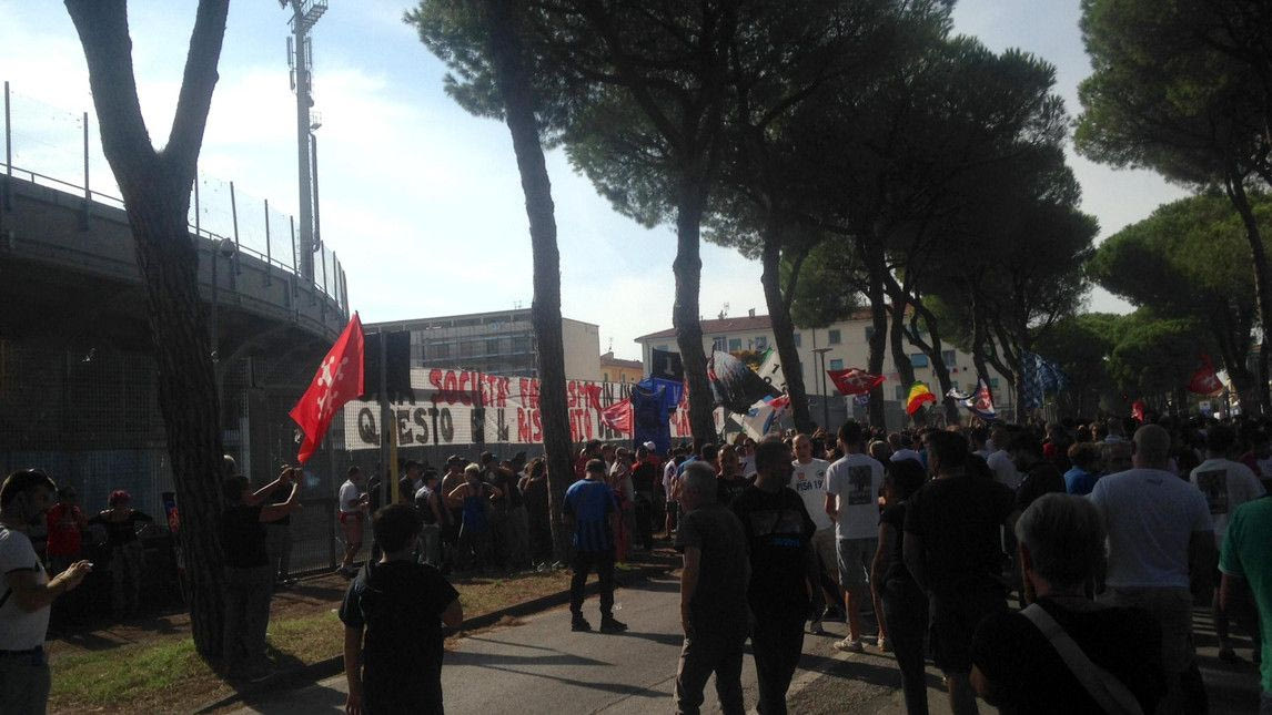 Ποδοσφαιριστές και προπονητής “εισέβαλαν” στην -άδεια- Curva Nord και αφού ανέβηκαν όλα τα σκαλιά έφτασαν στην κορυφή όπου από εκεί χαιρέτησαν πίσω από ένα τεράστιο δίχτυ τους περίπου 3.000 συγκεντρωμένους τιφόζι της Πίζα που είχαν συγκεντρωθεί εκτός γηπέδου για να τους στηρίξουν με την παρουσία τους.