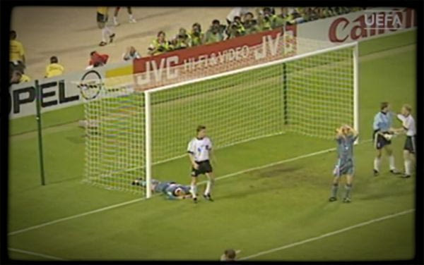 Ο Γκασκόιν βρίσκεται ξαπλωμένος με το πρόσωπο στο γρασίδι του Γουέμπλεϊ, στην άλλη άκρη του γηπέδου από εκεί που πανηγύρισε το εκπληκτικό του γκολ κόντρα στη Σκοτία. Ο Σάμερ συγχαίρει τον Κέπκε, στην ουσία χωρίς κάποιο ιδιαίτερο λόγο και το παιχνίδι πηγαίνει στα πέναλτι μέσω των οποίων οι Γερμανοί προκρίνονται στον τελικό.