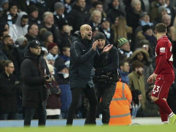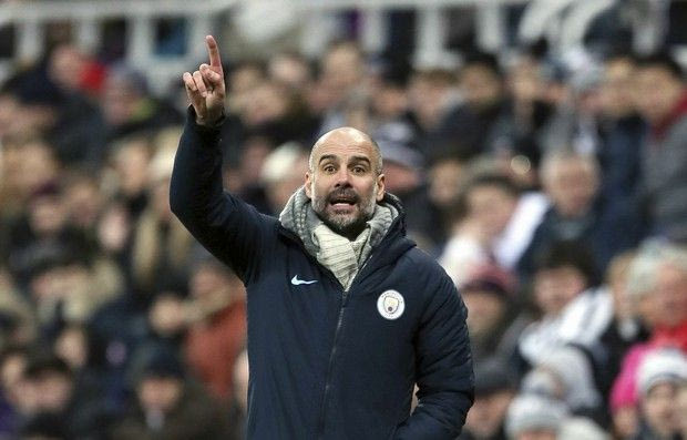 Manchester City manager Pep Guardiola gestures on the sideline during a English Premier League soccer match against Newcastle United at St James' Park in Newcastle, England, Tuesday Jan. 29, 2019. (Richard Sellers/PA via AP) AP