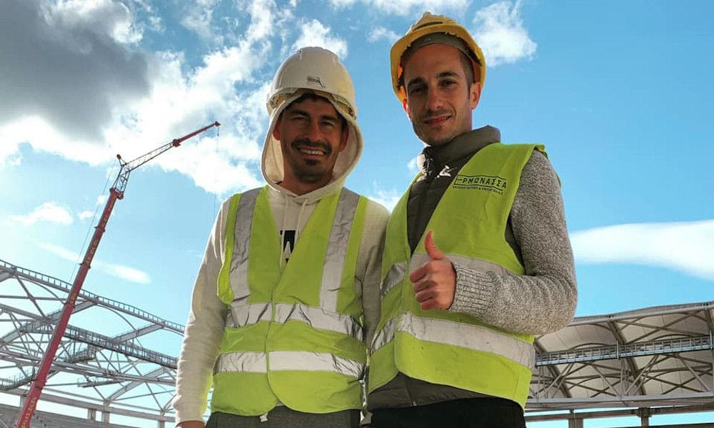 Ο Ισμάελ Μπλάνκο μαζί με τον μάνατζερ Αντώνη Ρίκκα, επιβλέπουν τις εργασίας στο νέο γήπεδο ποδοσφαίρου της ΑΕΚ Antonis Rikka/Facebook