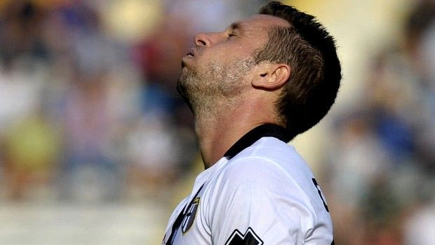 Parma's Antonio Cassano looks up during the Serie A soccer match against Genoa, at Parma's Tardini stadium, Italy, Sunday, Oct. 5, 2014. Parma lost 1-2. (AP Photo/Marco Vasini) AP