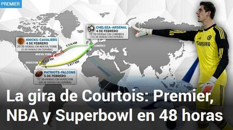 Ο Βέλγος γκολίπερ των “μπλε” έκανε 10.000 μίλια με το αεροπλάνο, ταξιδεύοντας στην άλλη πλευρά του Ατλαντικού, για να βρεθεί στο εγκαίρως στο “Madison Square Garden” της Νέας Υόρκης και να δει την κόντρα των Νικς με τους πρωταθλητές Καβαλίερς (ματς που οι γηπεδούχοι πήραν στην παράταση με 111-104) ενώ ακολούθως το πρόγραμμα είχε… Super Bowl.