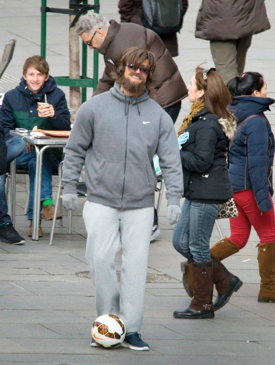 Έχουμε συνηθίσει να τον βλέπουμε ντυμένο στα χρώματα της Ρεάλ Μαδρίτης. Ωστόσο, αυτή τη φορά, ο Κριστιάνο Ρονάλντο αποφάσισε να αποχωριστεί για λίγο τη φανέλα της ομάδας του και τα ακριβά ρούχα, προκειμένου να κάνει έκπληξη στους οπαδούς των “μερένγκες”. Μεταμφιέστηκε λοιπόν σε έναν χοντρό ζητιάνο, με μούσι και γυαλιά, κάνοντας κόλπα με μια μπάλα ποδοσφαίρου.