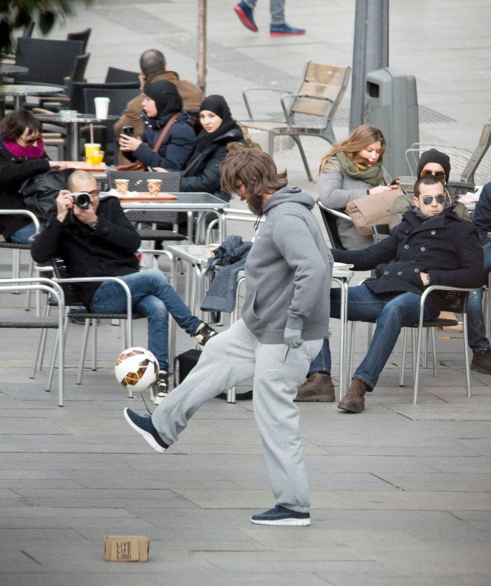 Η κίνηση του Πορτογάλου που προφανώς έγινε για διαφημιστικούς σκοπούς, έλαβε χώρα την πριν λίγες μέρες, στην πλατεία Callao της Μαδρίτης. Φυσικά, από την εμφάνισή του κανείς δεν τον κατάλαβε, αλλά και για να τους “δυσκολέψει” ακόμη περισσότερο, έκανε τρικ με την μπάλα, ζητώντας στη συνέχεια λεφτά, παριστάνοντας τον ζητιάνο!