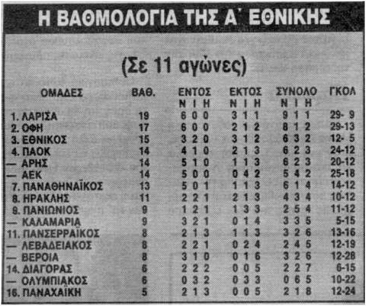 27 Δεκεμβρίου 1987: Η Λάρισα στην κορυφή του πρωταθλήματος και ο ΟΦΗ, ο Εθνικός και ο ΠΑΟΚ έχουν αφήσει από κάτω τους όλες τις 'μεγάλες δυνάμεις' του ελληνικού ποδοσφαίρου. Μια μαγική εικόνα!