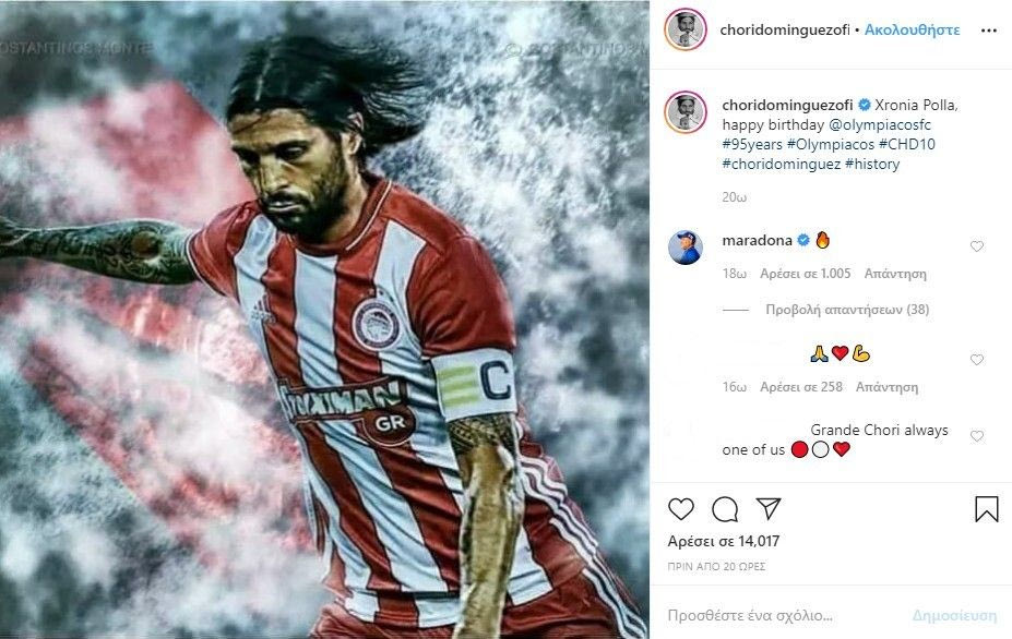 Η απάντηση του Ντιέγκο Μαραντόνα στο μήνυμα του Αλεχάντρο Ντομίνγκες για τα γενέθλια του Ολυμπιακού Instagram/choridominguezofi