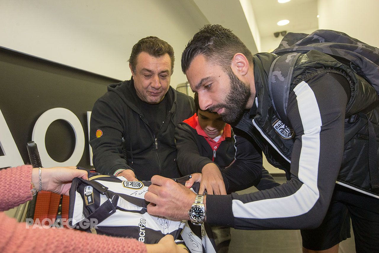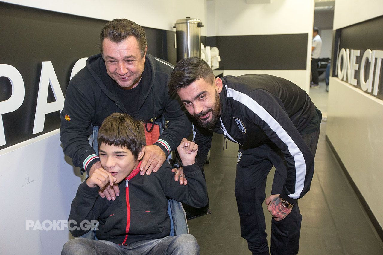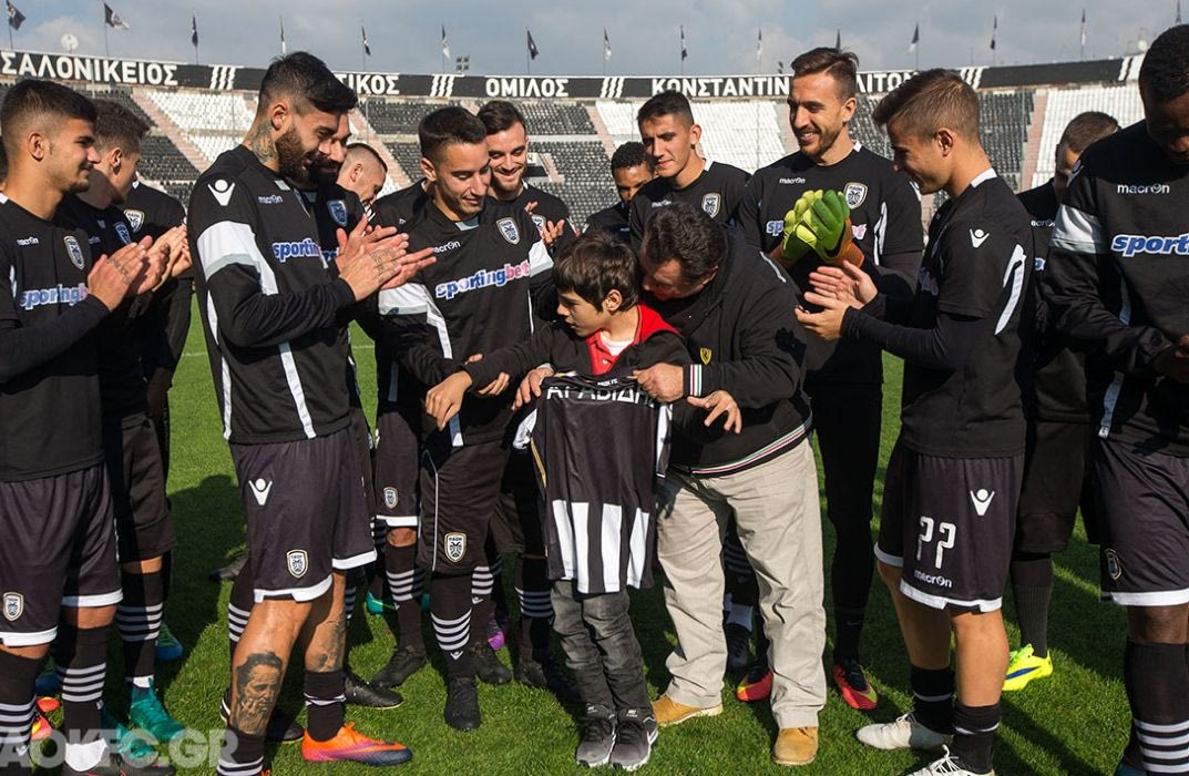 Ο Παναγιώτης πήρε τη φανέλα με το όνομά του και τις υπογραφές όλων των παικτών, φωτογραφήθηκε μαζί τους και πρόσθεσε τ’ όνομά του στη μακρά λίστα με τα επίτιμα μέλη της οικογένειας του ΠΑΟΚ.