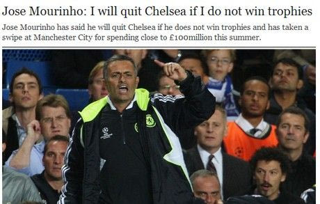 Επίσης τον Μάρτιο του 2011 ο Μουρίνιο έλεγε ότι ” σύμφωνα με τη φιλοσοφία μου, το να τερματίζεις δεύτερος σε μετατρέπει στον καλύτερο αποτυχημένο προπονητή“. Φαίνεται όμως πως ακόμη κι αυτό έχει διαγραφεί από την ασθενή μνήμη του, καθώς αναγνωρίζει πλέον ότι δεν μπορεί να φτάσει ψηλότερα από τη δεύτερη θέση στην Premier League, σημειώνοντας ότι ” έκανα λάθος πετυχαίνοντας όσα κανένας άλλος τα προηγούμενα χρόνια, με αποτέλεσμα τώρα η δεύτερη θέση να μην θεωρείται επιτυχία“.