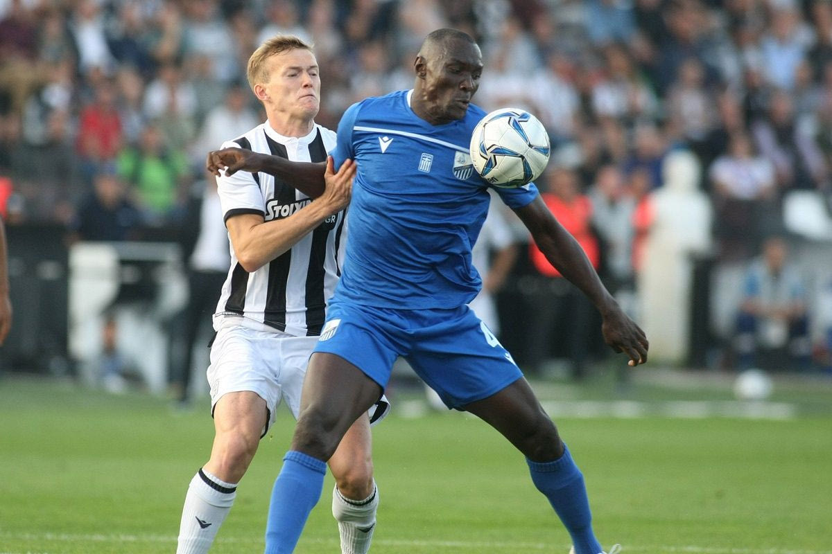 Ο Ντάνιελ Αντέτζο της Λαμίας σε μονομαχία με τον Κάρελ Σβιντέρσκι του ΠΑΟΚ για τη Super League 1 2019-2020 στο γήπεδο της Τούμπας, Κυριακή 20 Οκτωβρίου 2019 MotionTeam