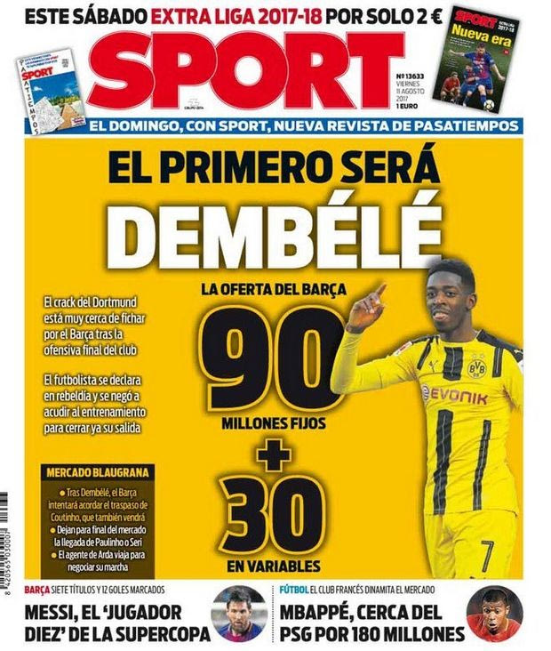 Η άρνηση της Ντόρτμουντ στην πρόταση των 70.000.000 ευρώ δεν φαίνεται να πτόησε τους ανθρώπους της Μπαρτσελόνα και σύμφωνα με την αποκάλυψη της καταλανικής εφημερίδας “Sport”, το βράδυ της Πέμπτης κατατέθηκε νέα εντυπωσιακή πρόταση στους Γερμανούς για τον 20χρονο Γάλλο μεσοεπιθετικό.