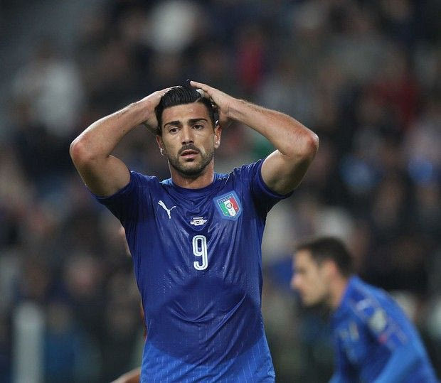 TURIN, ITALY - OCTOBER 06: Graziano Pelle of Italy reacts during the FIFA 2018 World Cup Qualifier between Italy and Spain at Juventus Stadium on October 6, 2016 in Turin. (Photo by Paolo Bruno/Getty Images) Getty Images
