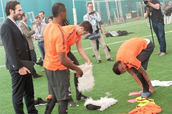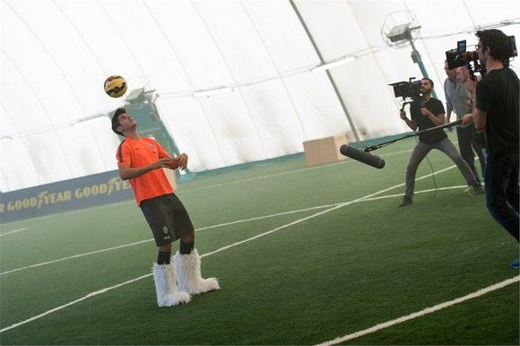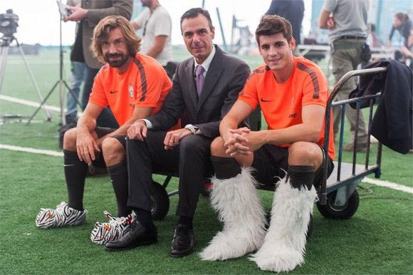 Κατά διάρκεια του σποτ, οι τέσσερις άσοι της “βέκια σινιόρα” αντί για ποδοσφαιρικά παπούτσια, φόρεσαν… παντόφλες, γαλότσες και βατραχοπέδιλα!