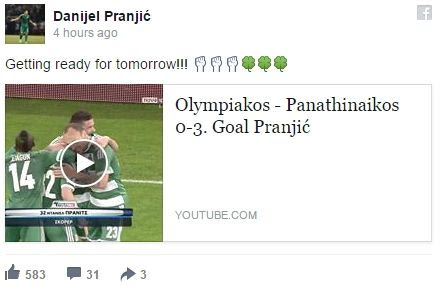 Μία ημέρα πριν τη μεγάλη αναμέτρηση, ο μπακ των “πράσινων”, Ντάνιελ Πράνιτς, θυμήθηκε το 0-3 του 2014 με τον ίδιο να έχει σκοράρει το πρώτο γκολ του αγώνα. Μάλιστα δεν δίστασε να ανεβάσει και VIDEO στον προσωπικό του λογαριασμό στο facebook, γράφοντας: