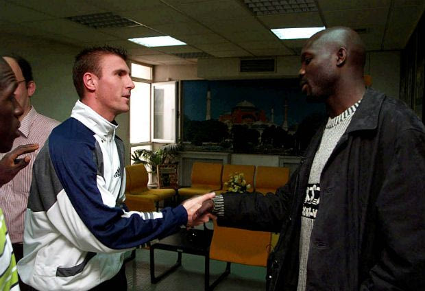 Κάπως έτσι ολοκληρώθηκε το στόρι “αγάπης” Κόκκαλη – Γουεά. Ο σημερινός πρόεδρος της Λιβερίας έκανε “βόλτες” στα γραφεία της ΠΑΕ ΑΕΚ, πήγε να δει Εθνικός Αστέρας – Ολυμπιακός, έπαιρνε 3.000.000 δολάρια (1 δις δραχμές) από τη Μίλαν και ο πάλαι ποτέ ισχυρός άνδρας των “ερυθρόλευκων” που ήξερε το ποσό είχε “απαιτήσει” από τον Ραγκούση απάντηση νωρίτερα από δύο μήνες. Γιατί χάλασε τελικά; Δεν θα μάθουμε ποτέ…