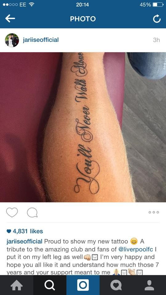 Ακόμα όμως κι αν δεν βρίσκεται πλέον εκεί, η αγάπη του για την ομάδα και τους φιλάθλους της παραμένει έντονη. Απόδειξη το τατουάζ που “χτύπησε” πρόσφατα ο Νορβηγός στο αριστερό του “φαρμακερό” πόδι και το οποίο γράφει “You ‘ll never walk alone”.