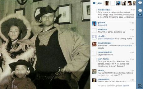 Μια από αυτές είναι και ο Μουρίνιο, τον οποίο ο Ριβάλντο έχει σε πόζα με στολή Καουμπόι…Ο “Special One” επέλεξε τη συγκεκριμένη ενδυματολογική κατάσταση με αφορμή κάποιο αποκριάτικο πάρτι από την εποχή που ήταν βοηθός του Σερ Μπόμπι Ρόμπσον στην Μπαρτσελόνα.