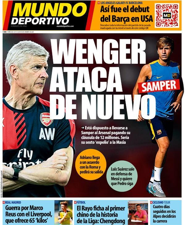 Στο κυνήγι του 20χρονου χαφ της Μπαρτσελόνα, Σέρχι Σαμπέρ βρίσκεται η Άρσεναλ η οποία θέλει να ενισχύσει τη γραμμή του κέντρου. Στενό μαρκάρισμα κάνουν οι "κανονιέρηδες" και στη Ρεάλ για τον Μπενζεμά. Διαβάστε όλες τις τελευταίες εξελίξεις στο στρατόπεδο της ομάδας του Λονδίνου.